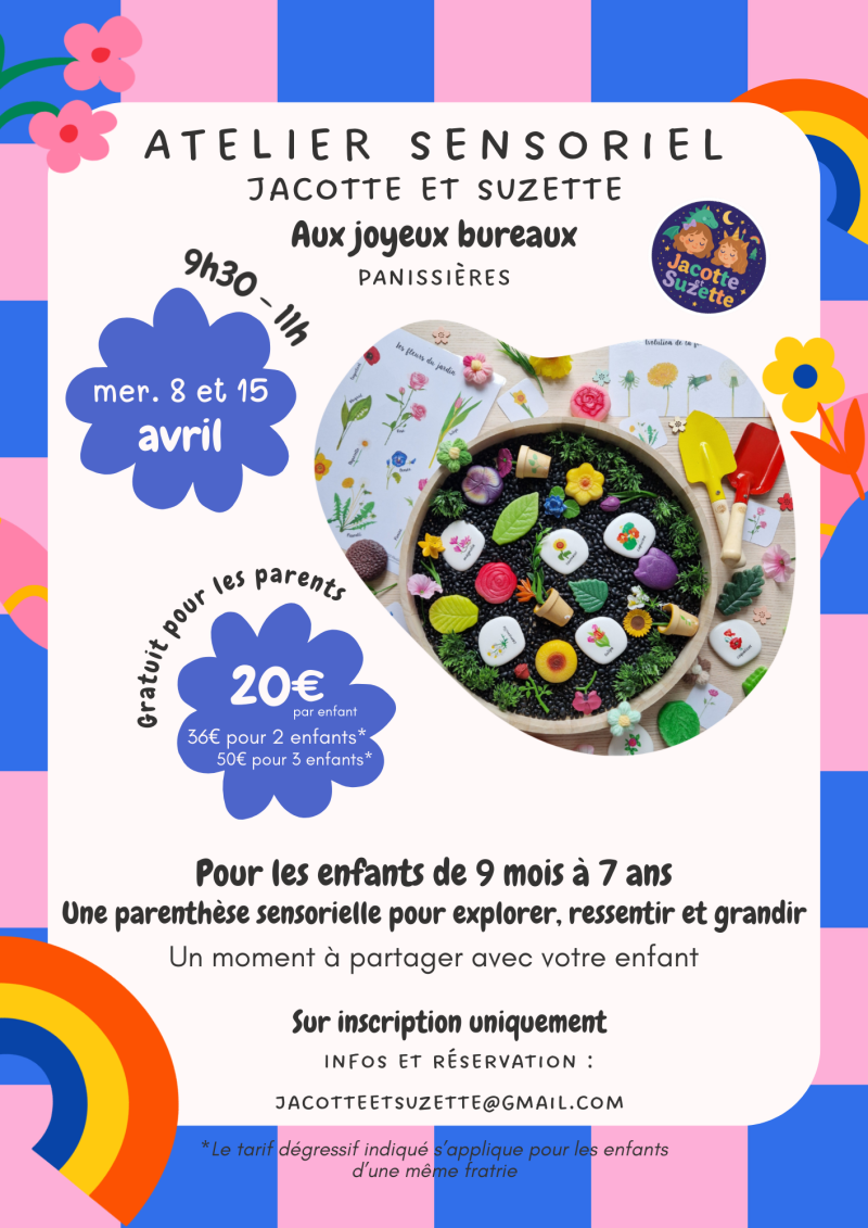 Réservation : Les ateliers se font sur inscription uniquement, réservation possible par mail jacotteetsuzette@gmail.com ou via le formulaire ci-dessous